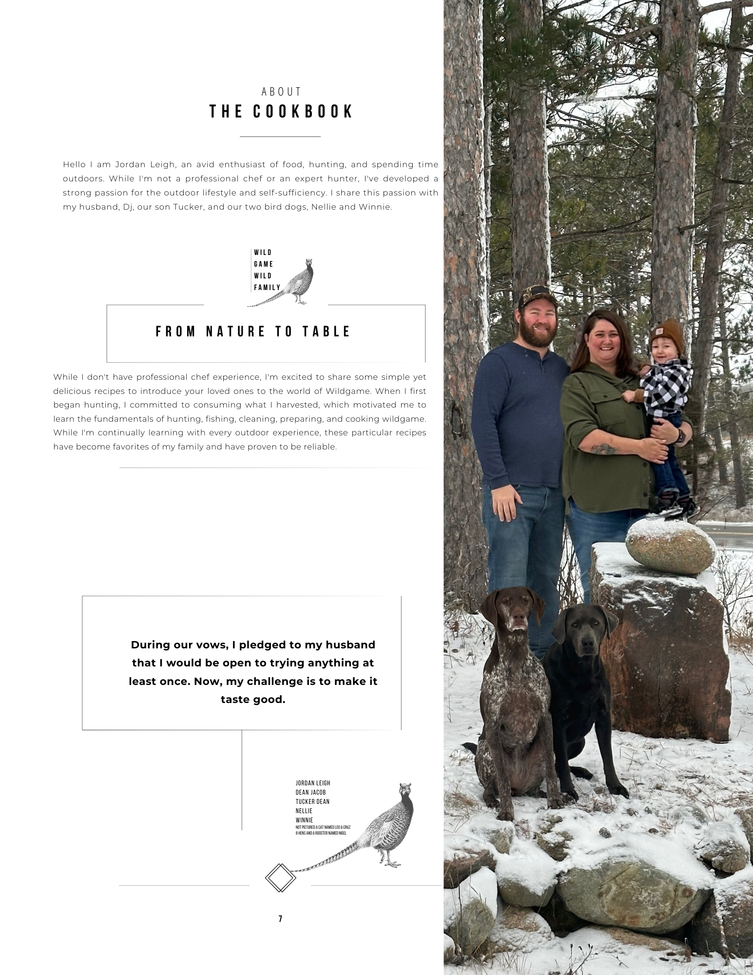 Wild Game, Wild Family is more than a cookbook — it’s a celebration of tradition, family, and the land that provides. Inside you’ll discover: